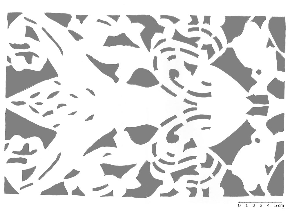 Schablonenmalerei am Deckenanschluss der Süd- und Nordwand (Abb. 08, 09)