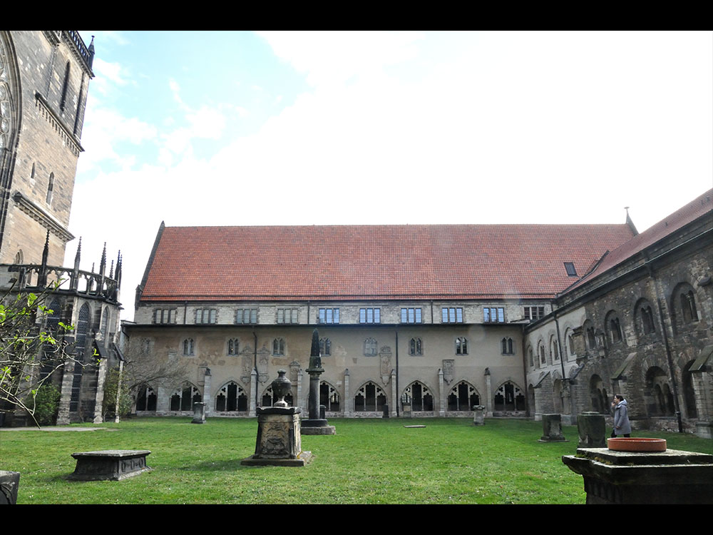Östlich vom Kreuzhof befindet sich ein zweigeschossiger Klausurbau, der auch im Dachbereich ausgebaut wurde (Abb. 02). Im Erdgeschoss des Gebäudes befindet sich ein großer zweischiffiger Saal, der so genannte Remter. Der reguläre Zugang erfolgt über zwei Portale im Westen.¹ Nur über den Remter sind die Marienkapelle, der ottonische Chor unter dem Dom und die Redekinkapelle zu erreichen.