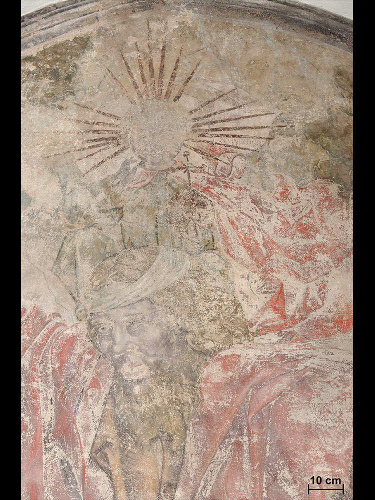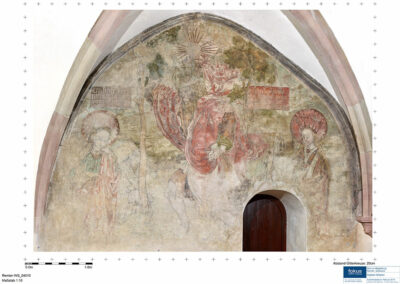 Trotz ihres flächenmäßig reduzierten Bestandes kann der hier beschriebenen Wandmalerei ein hoher sowohl ikonografischer als auch werktechnischer Informationsgehalt zugeschrieben werden. Rein visuell lässt sich ein intakter Zustand ohne größere Destabilisierungen konstatieren.