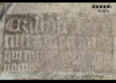 „Cristofe(re) [s(an)c(t)e] / v[ir]tutes su(n)t t(ib)i tante / Qui te mane videt / nocturno [tempore⁷] ridet“ (Abb. 10)