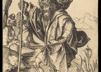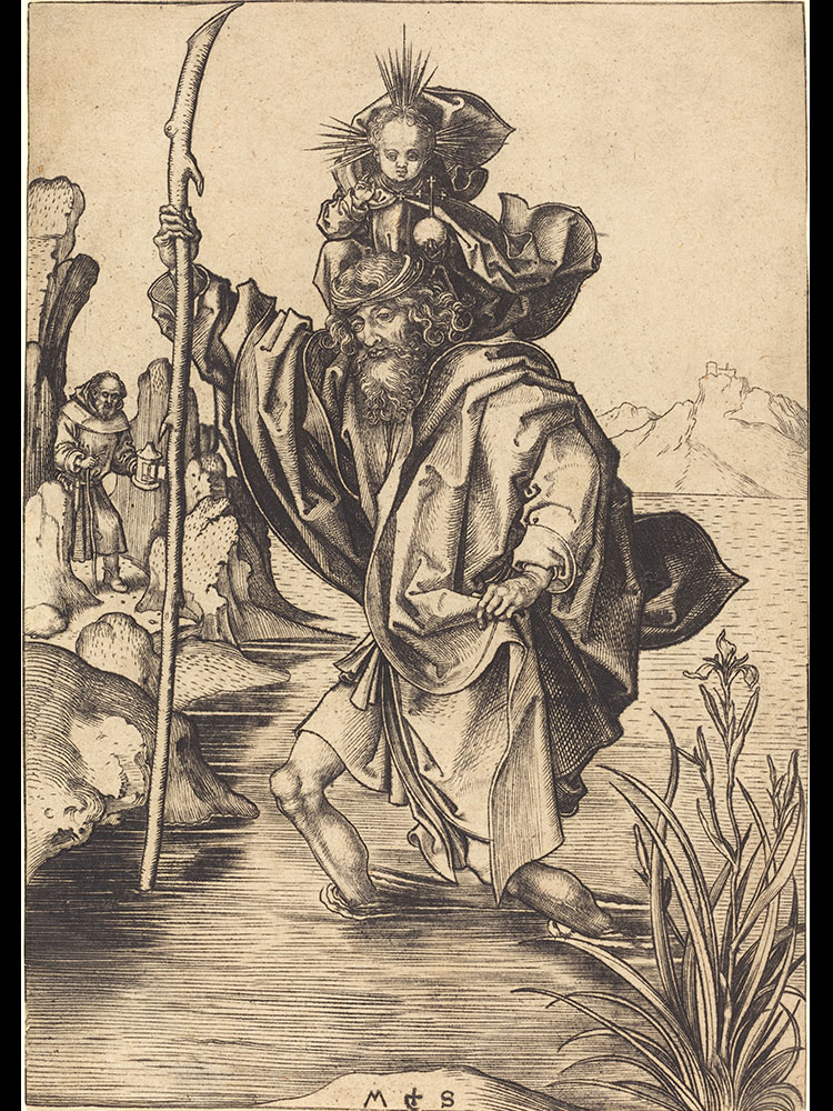 Holzschnitt nach dem Kupferstich des Heiligen Christophorus von Martin Schongauer (um 1475)