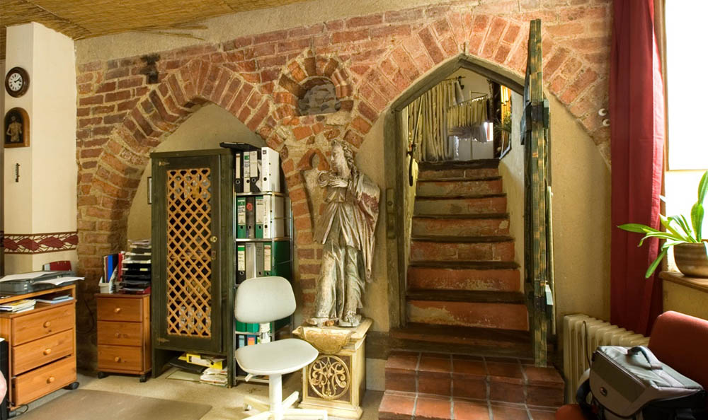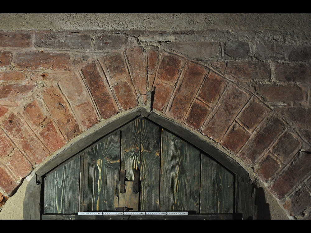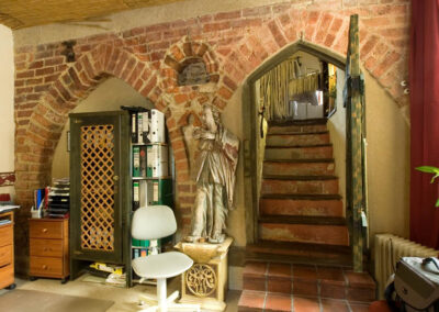 Bereits viel eher ist im Nordwesten des Gebäudes ein tonnengewölbter, annähernd quadratischer Raum entstanden, der sich in der Höhe seines Laufhorizonts deutlich von den übrigen Räumen im Erdgeschoss unterscheidet.