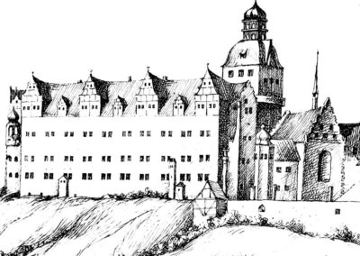 Schloss Wolmirstedt, Ansicht von Südosten, nach Gebhard von Alvensleben 1665 (Quelle: Museum Wolmirstedt)