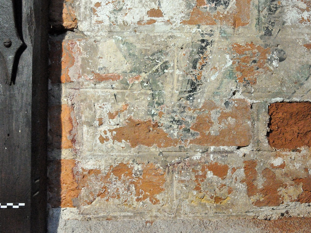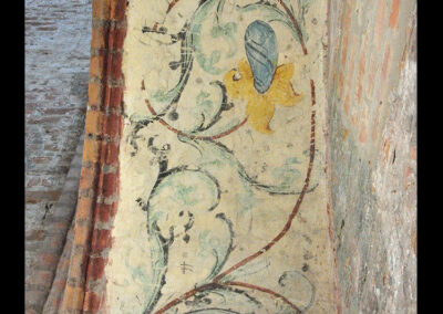 Zur zweiten Gestaltungsphase gehören die vegetabilen, teils floralen Rankenmalereien sowie figürliche, teilweise szenisch angelegte Darstellungen, die heute nur noch vereinzelt und schwer erkennbar sind (Abb. 07 bis 11). Im östlichen Bereich der Kapelle lassen sich hingegen keine ornamentalen oder figürlichen Bemalungen feststellen:
