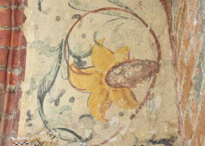 Mittlere Nische der Nordwand, westlicher Abschnitt der Bogenlaibung mit Rankenmalerei und stilisierter Blüte